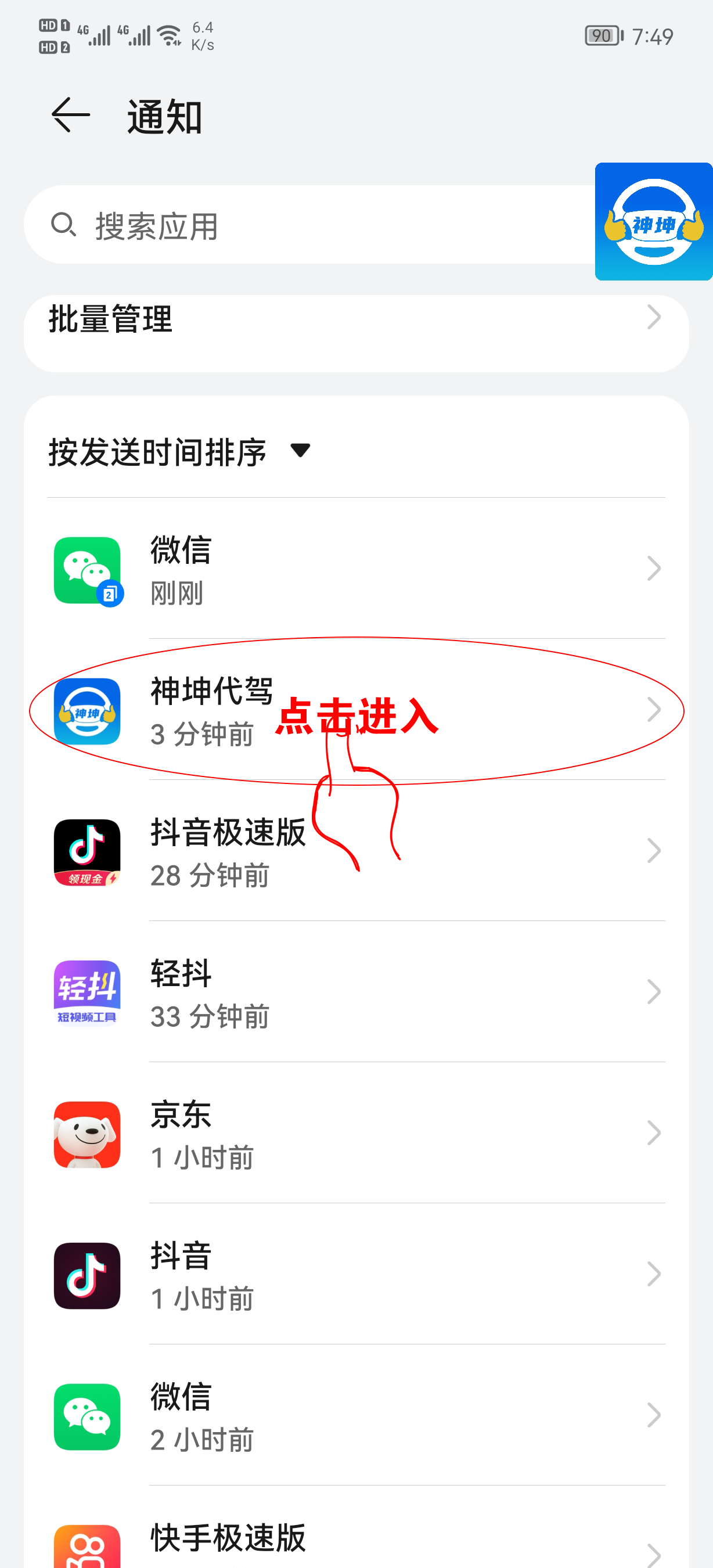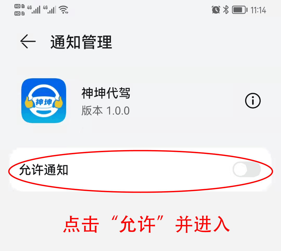 注:安装完成后,打开应用后如果没有开启会默认跳到应用界面,下面通知管理设置点击进入打开对应设置。