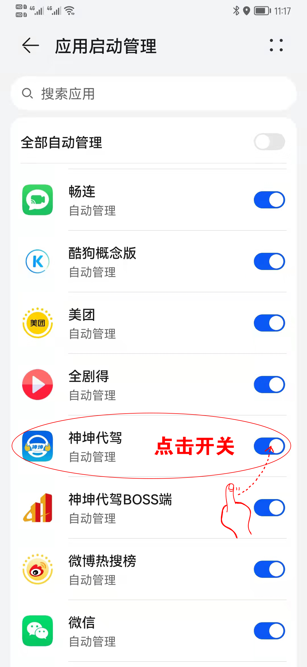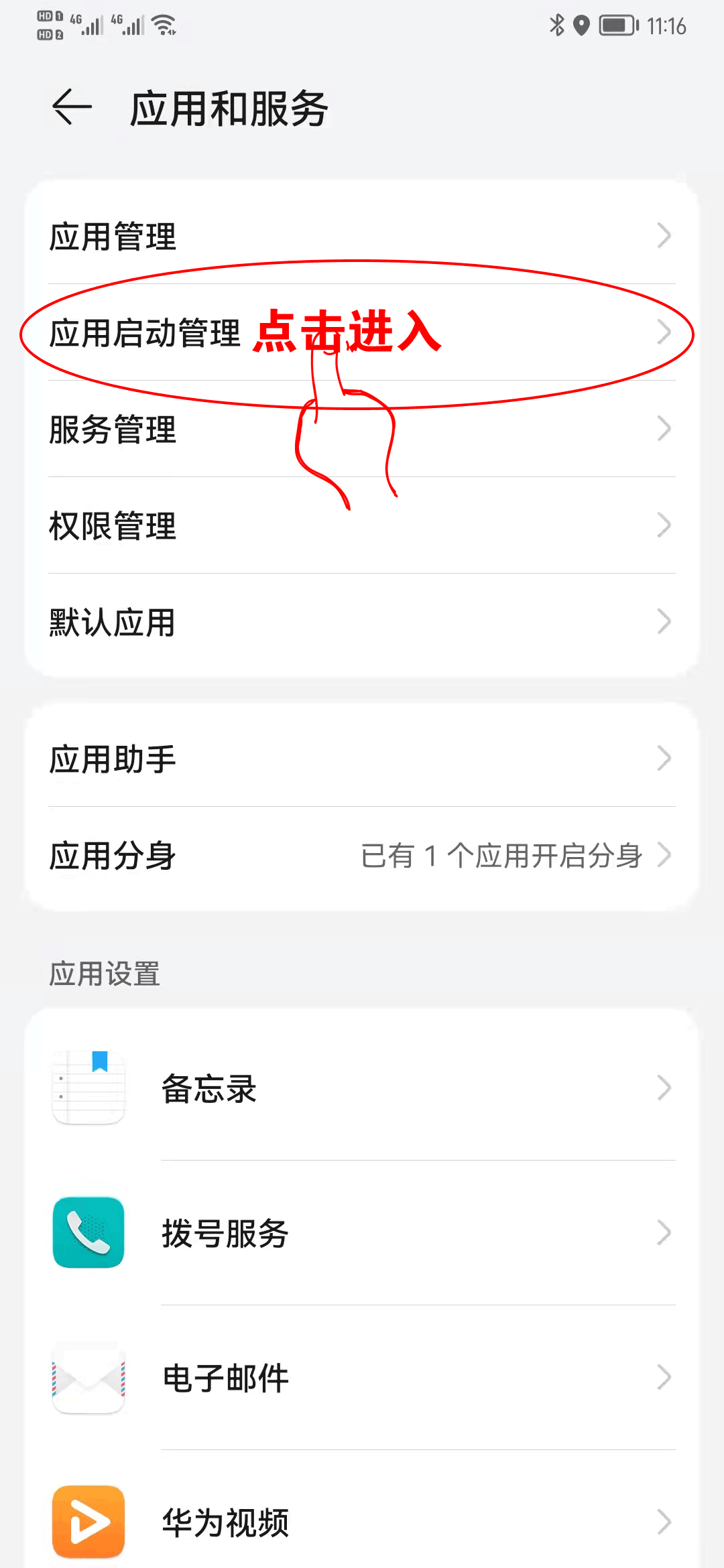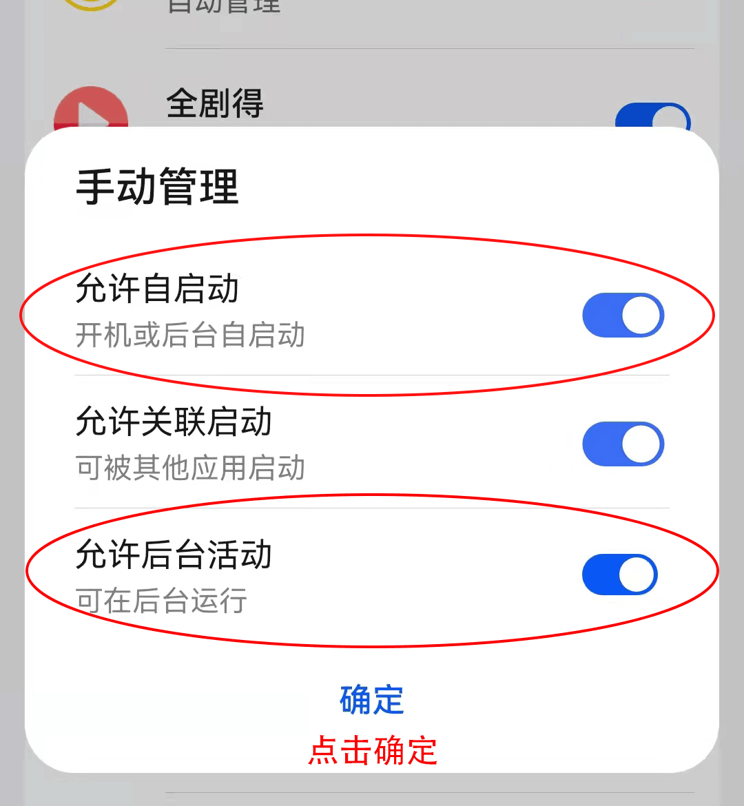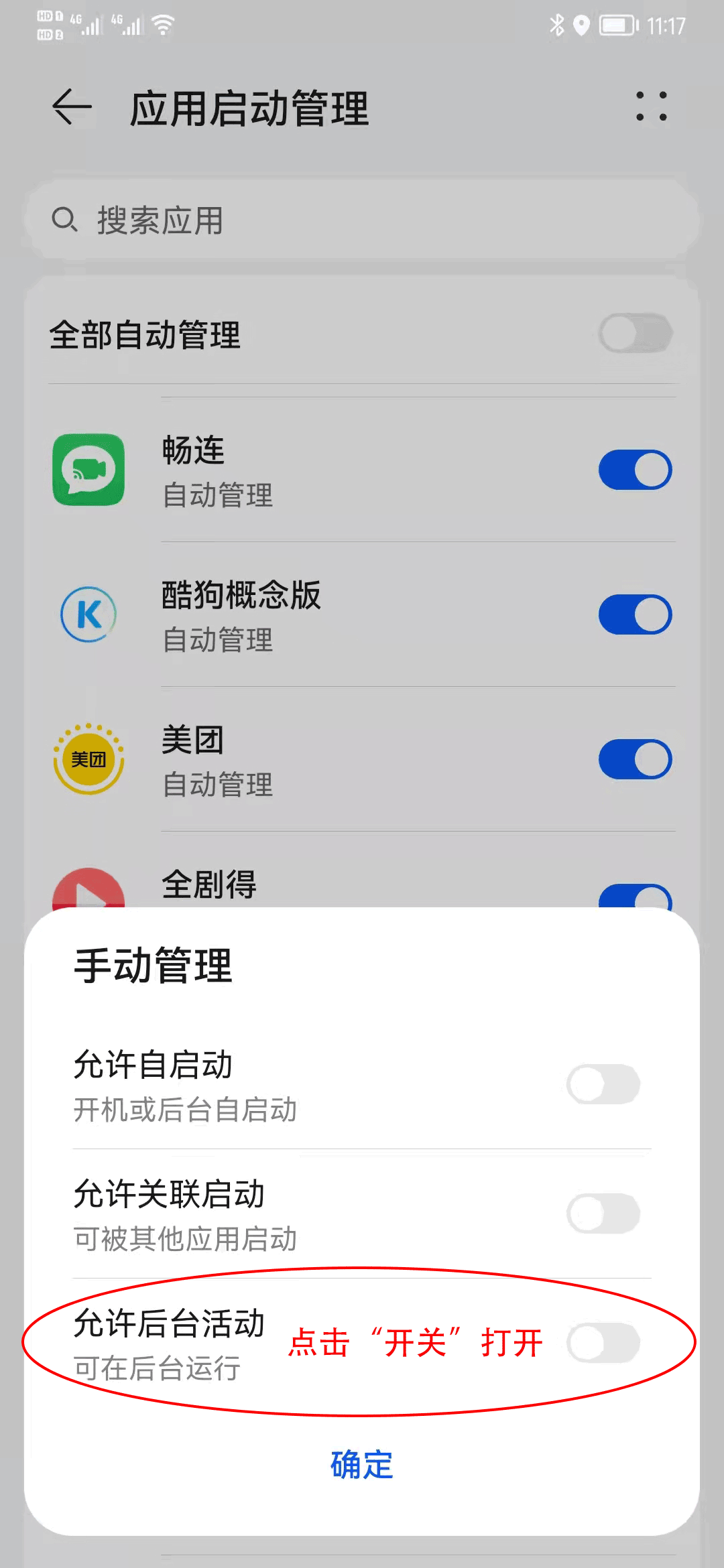 操作步骤:设置-应用和服务-应用启动管理,找到此应用-自动管理切换到手动管理、允许关联启动和允许后台活动打开,参考下面的图片: