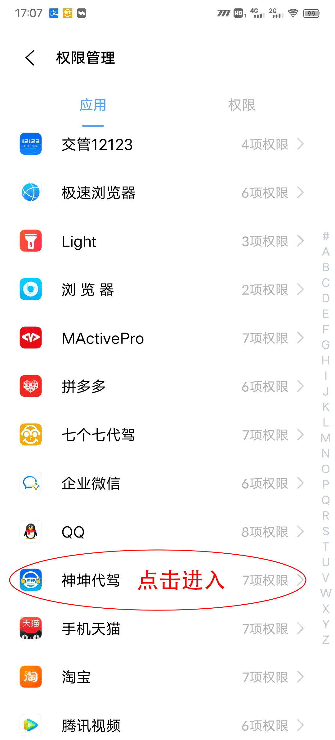 3、权限管理,找到神坤代驾(代驾APP),并点击进入,如下图: