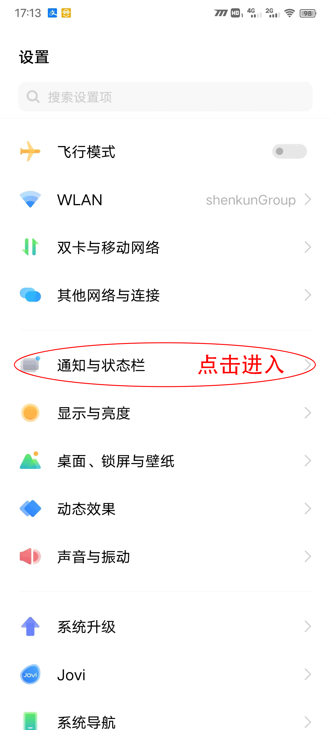1、设置,找到通知与状态栏并点击进入,如下图: