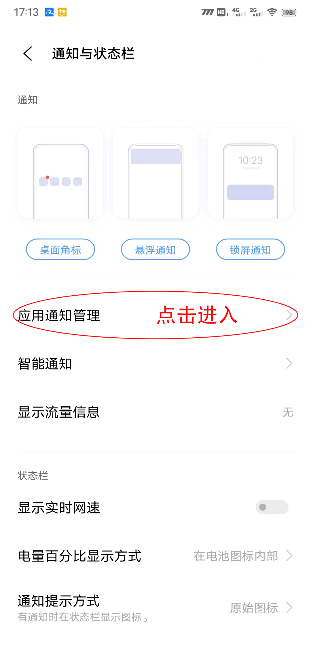 2、通知与状态栏,找到应用通知管理并点击进入,如下图: