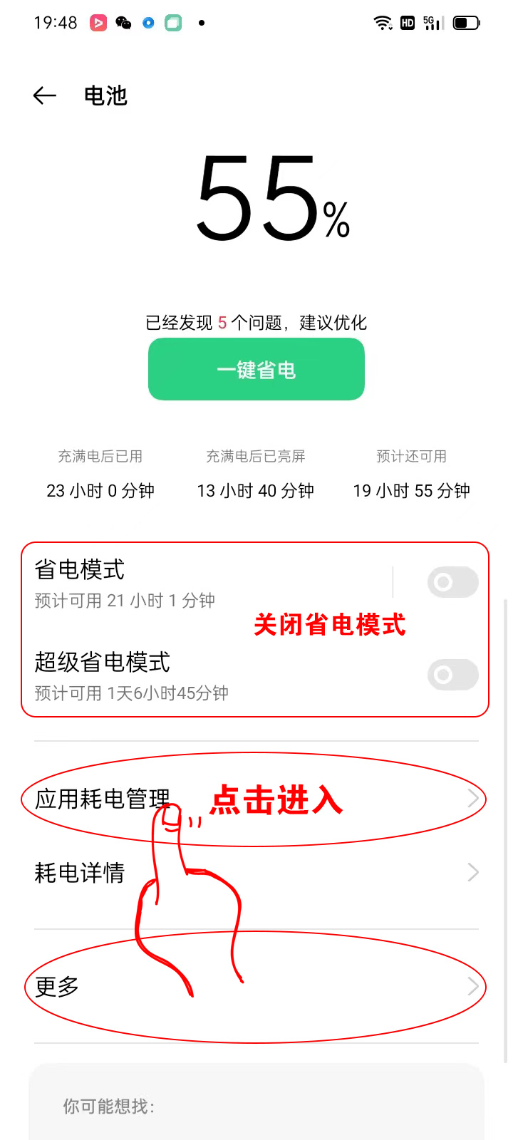 注:省点模式要关闭,允许后台完全运行必须开启。